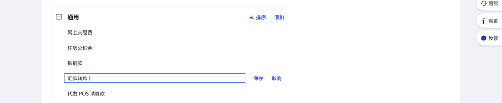 1. 点击对应分类右侧的“添加”按钮或要修改用途的“编辑”按钮,再出现的输入框中进行用途编辑。